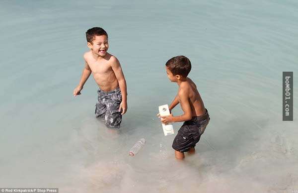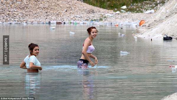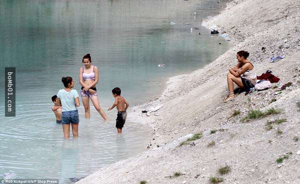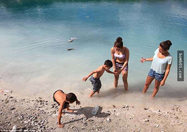 ▼最不可思議的是什麼呢?居然還有一些家庭聚集在這裡游泳。