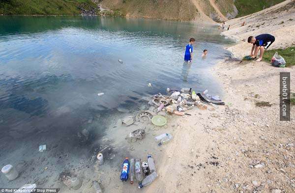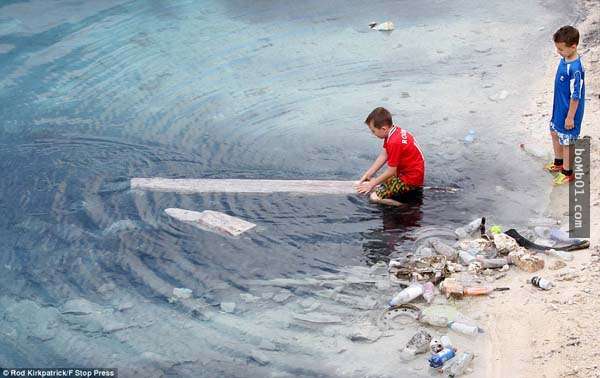 從遠處看很值得帶一家大小來玩水的藍色湖 看了裡面的東西一步也不敢踏進去