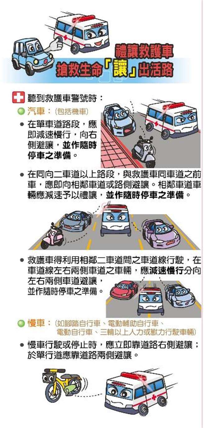 救護車是要趕去救命,當然要避讓,想想那個快要死掉等待救援的人,千萬不要擋車啊。