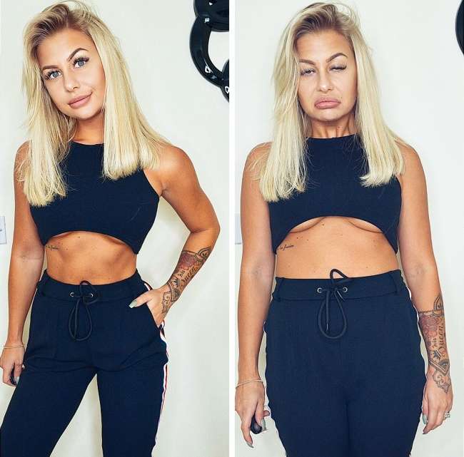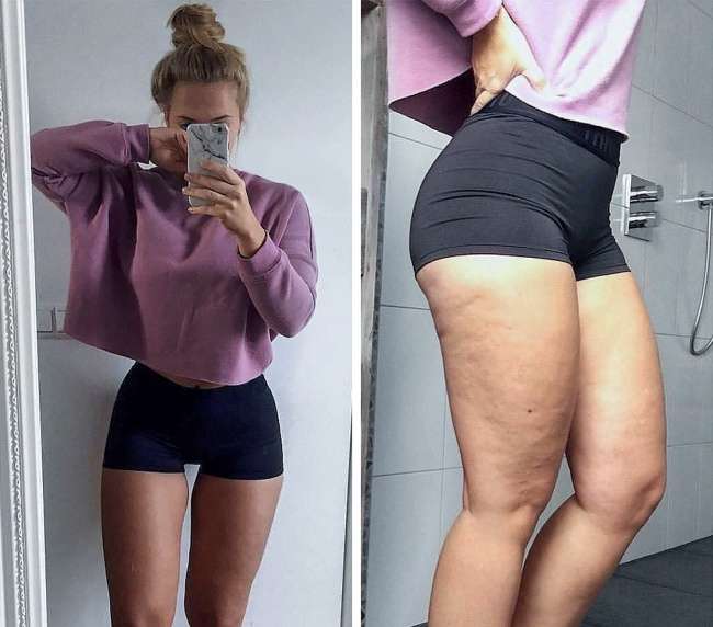 ▼這些女孩PO出美美的照片,隨後又PO出真實的日常照。不擺姿勢,不找特定的角度,她們看起來「醜」了很多。