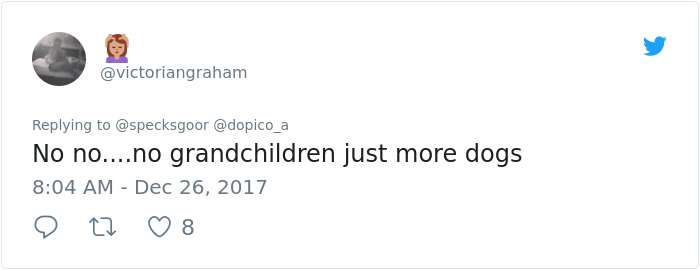 ▼「不不……妳爸需要的不是孫子,應該是更多狗狗。」
