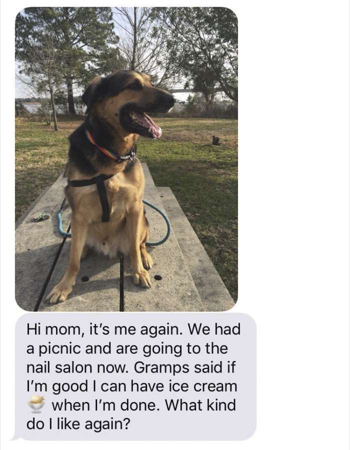 ▼Meghan覺得老爸很有趣,忍不住將這些簡訊PO到了社群網站上,網友們紛紛表示:「我最喜歡的是所有照片中狗狗超開心的樣子。」