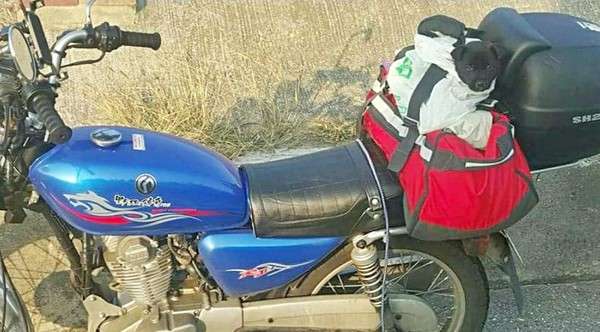 ▼騎士當場收編小狗,還找了一個超商塑膠袋,將乖巧的小狗打包起來,安置在行李旁。