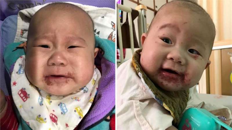 ▼醫生檢查後表示,于小姐的兒子本身就有異味性皮膚炎,可能是覺得不舒服自己抓傷,導致細菌感染。但後來小孩的症狀又變嚴重,再去看醫生才發現,他感染了皰疹病毒。于小姐按照醫師的建議,每天給兒子擦兩種藥膏,但幾天過去小孩沒有好轉,反而越來越嚴重,疹子都長到眼瞼了。她又帶兒子去急診,緊急住院治療。
