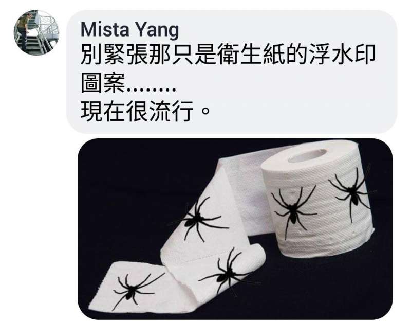 ▼網友們紛紛圍觀,有人天生不怕表示「你一直拉衛生紙,牠一直跑,這樣很有趣」、「翻滾吧~」、「狂抽衛生紙牠就會掉出來」;還有網友打趣「這是變成蜘蛛人的重要時刻」、「放蟑螂進去跟牠換衛生紙」;還有網友表示「千萬不要動,大不了拿內褲擦一擦」、「提上褲子趕緊跑」;還有人提出「這是一種現在流行的帶有蜘蛛水印的衛生紙」。