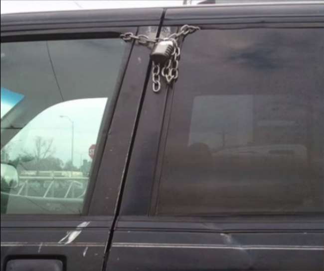 ▼​幹嘛這樣鎖車門?這是多不信任現代科技啊。
