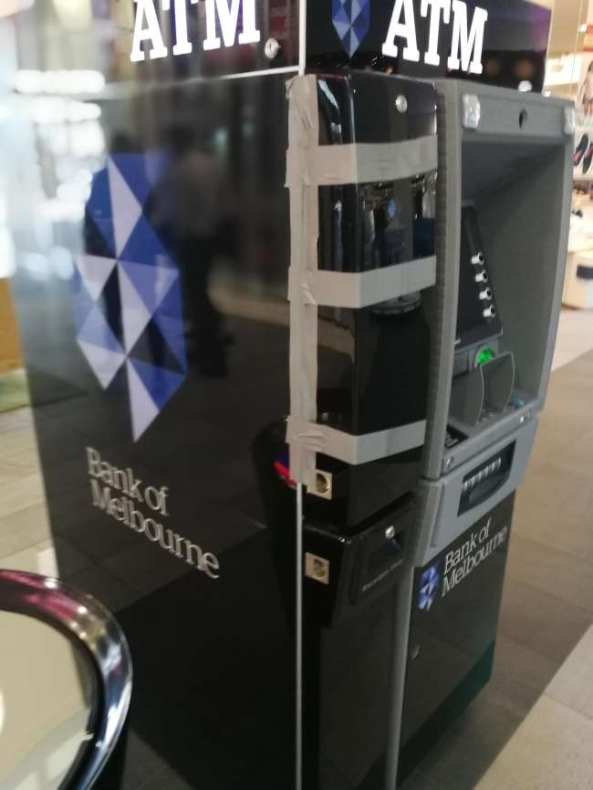 ▼​ATM機壞了沒關係,用膠帶修一下。