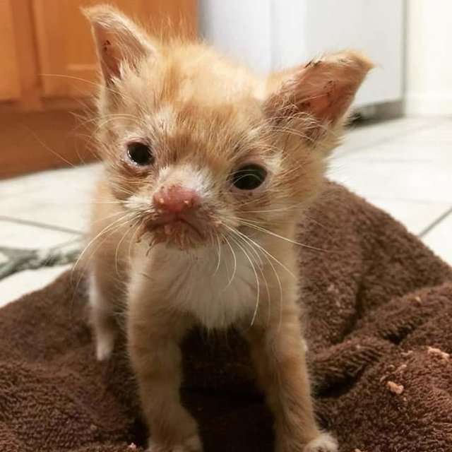 Smush是一隻天生面部畸形的小貓,患有嚴重的兔唇和寬眼距,10天大就被遺棄在外面。但幸運的是,牠被佛羅里達州貓咪救助組織的協調員林賽(Lindesy Hidenrite)救起,在精心的照料下奇蹟般的活了下來。