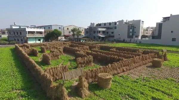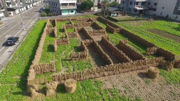 ▼反空污需要由多個層面下手,嘉義縣環保局委託太保市前水牛厝社區發展協會理事長徐盛林,聯合多名志工,耗費10天在徐的農地打造「稻草迷宮」,總共用了4.5噸稻草,也是全縣首座大型迷宮。