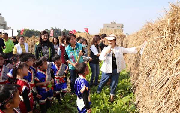 ▼稻草迷宮內以「地牛將軍廟」為特色,編織許多頭稻草牛,還教育來訪的小朋友:「稻草用途多,不能放火燒喔!」開幕當天,嘉義縣長張花冠與議長張明達妻子黃瓊賢、太保市長黃榮利等人,也特別到現場體驗迷宮,宣導相關觀念。