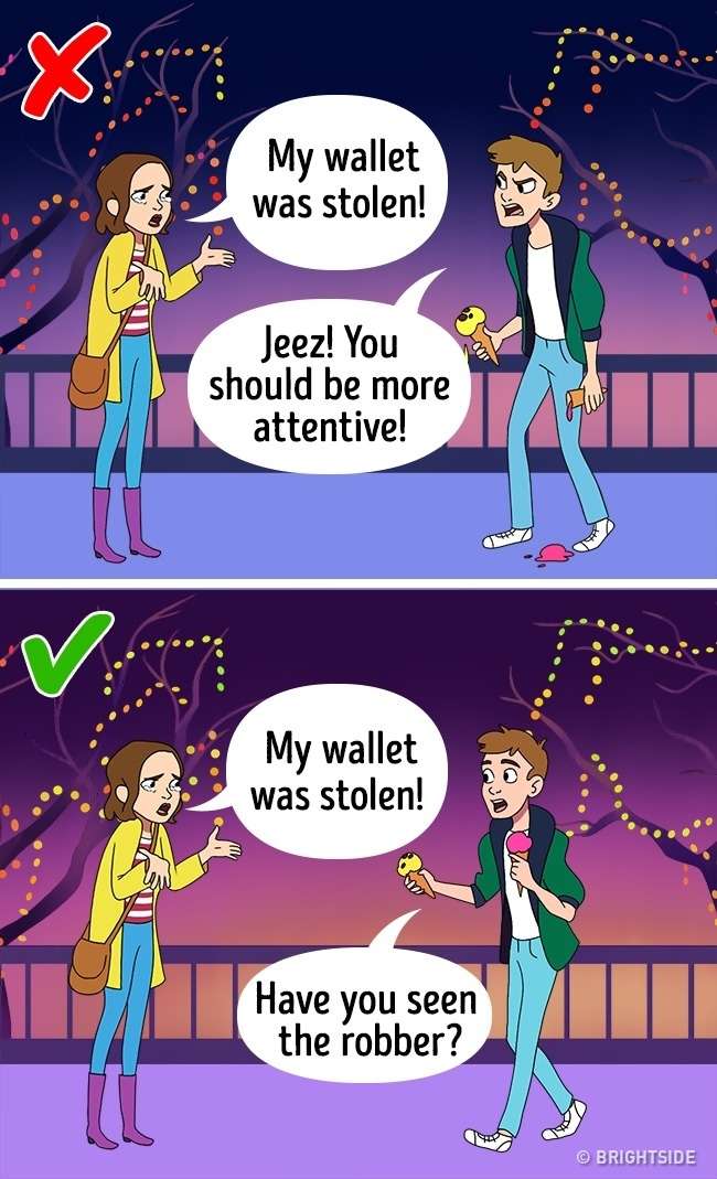 錯:「我的錢包被偷了!」「啊!你應該小心一點啊!」
