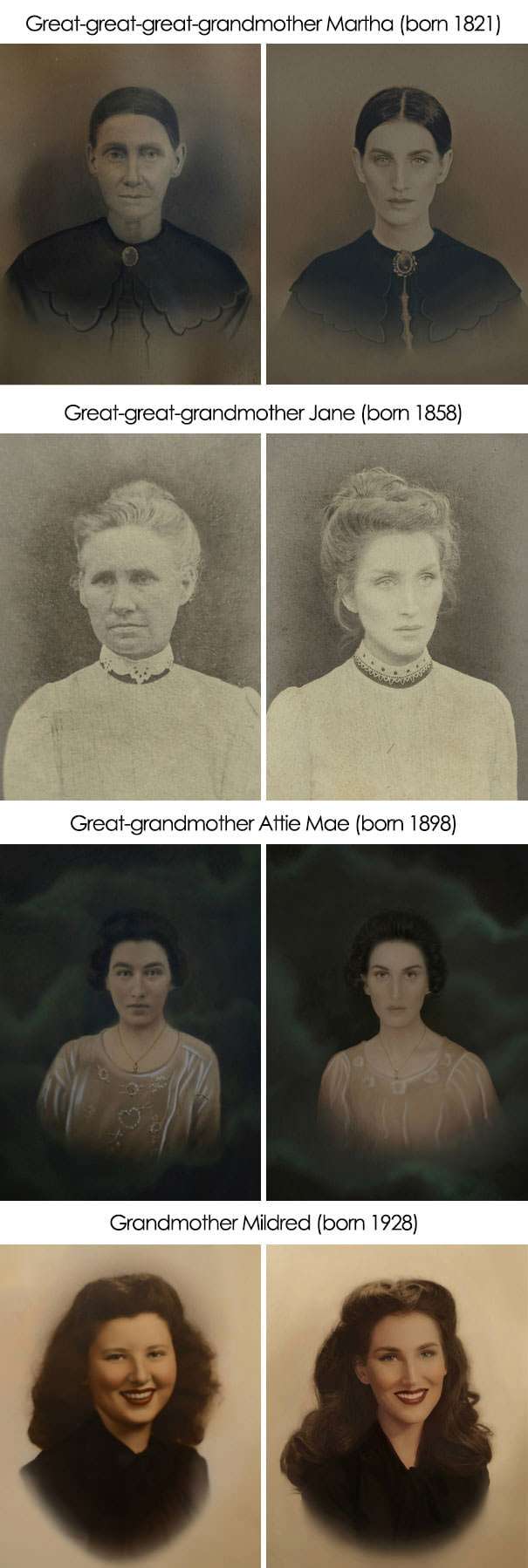 ▼1821年出生的曾曾曾祖母;1858年出生的曾曾祖母;1898年出生的曾祖母,1928年出生的祖母。
