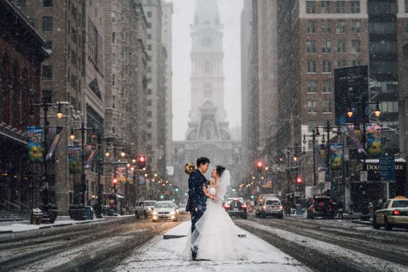 ▼不畏風寒,甚至不怕被車撞,都市婚紗照的最高境界!