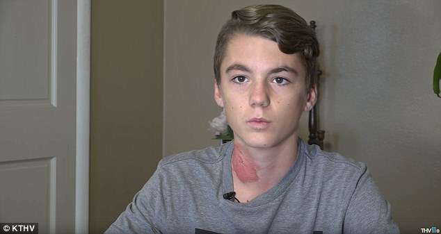 ▼這裡說的熱水,真的是滾燙的熱水。他們把熱水潑到毫無防備的人身上,還騙朋友用吸管喝下去。不久前,阿肯色州一名15歲男孩在朋友家留宿,半夜突然疼醒。他尖叫著跑到浴室照鏡子,這才發現自己的脖子被嚴重燙傷了。