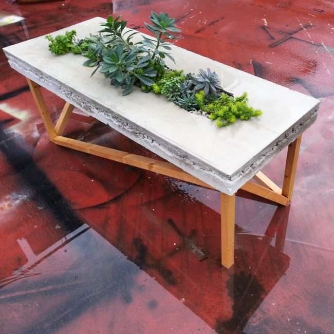 ▼可以養盆栽的水泥桌。