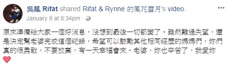 ▼吳鳳也在臉書對其他有相同經歷的父母安慰表示:「我也想跟與我有過相同遭遇的婦女們說:一開始妳們一定很自責,以為自己哪裡沒有做好,但其實我們沒有錯,只是老天爺可能還沒準備好。」