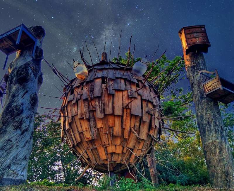 ▼1. 種子星球。新竹寶山上林舜龍藝術家創作的藝術作品「種子星球」吸引了無數遊客,漂流木和木條木板打造的巨大種子充滿創意。漂浮在半空的種子還可以進入參觀,但為了保證安全每次進入都有人數限制。