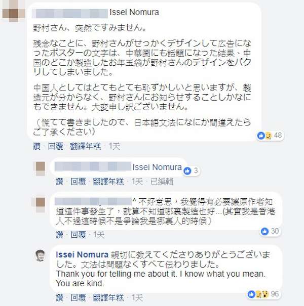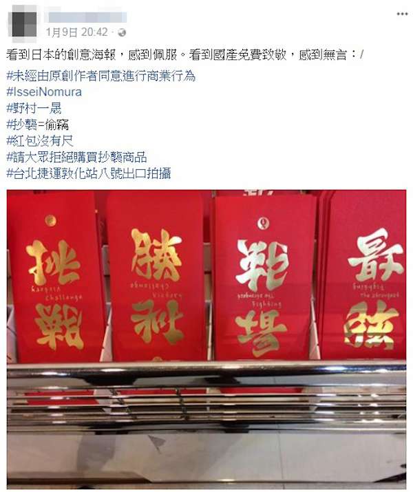 ▼不過野村一晟這些累積多年的功力卻很快遭到抄襲,近日就有網友爆料紅包廠商抄襲他的字體,「看到國產免費致敬,感到無言。」