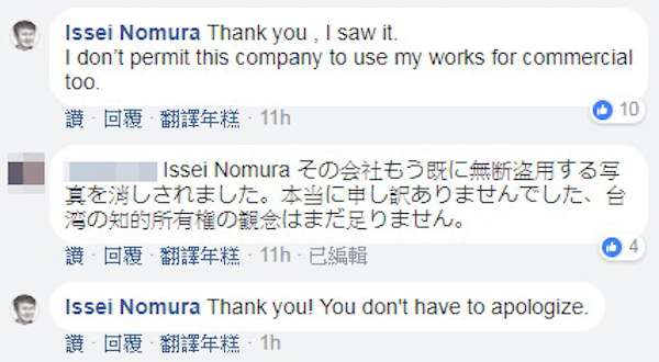 ▼其他網友通知了野村一晟這件事情,並向他致歉,沒想到野村本人很快出面回應:「謝謝你告訴我這件事情,我知道你想表達什麼,你人真好。」