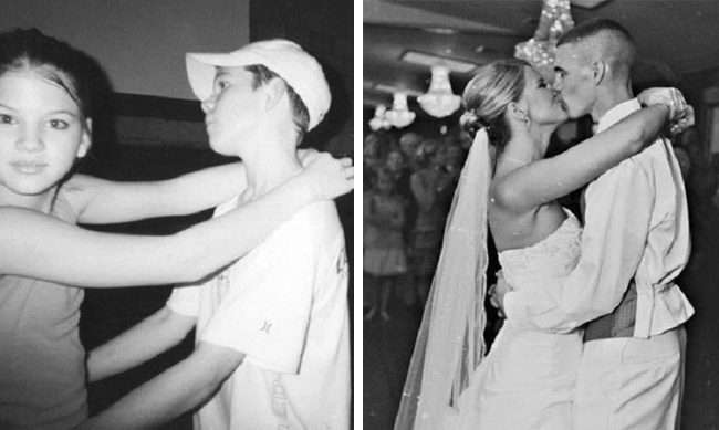 ▼這兩名小孩在玩旋轉木馬時就已經喜歡上對方,可是高中時才在一起,如今他們終於結婚了。