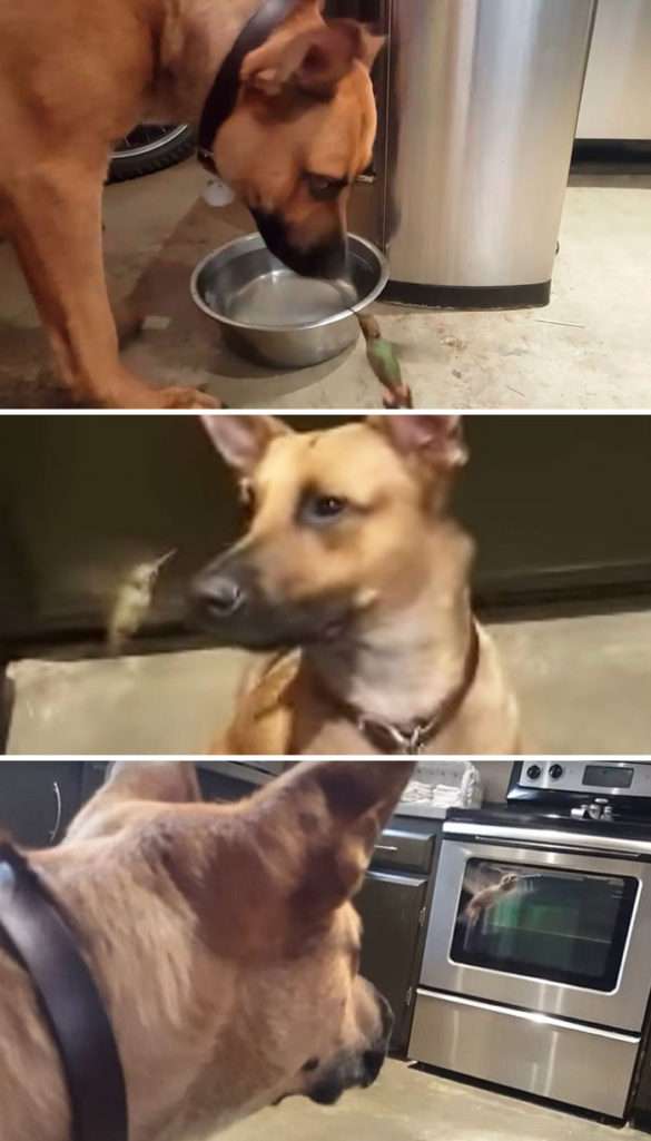 ▼15. 狗狗出門時發現了受傷的蜂鳥,且不願離開牠,於是主人就一起帶回家照顧了。