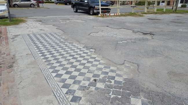 ▼這塊停車場過去曾是住宅地,地主沒有清除磁磚地,而是讓它自然地磨損消失。
