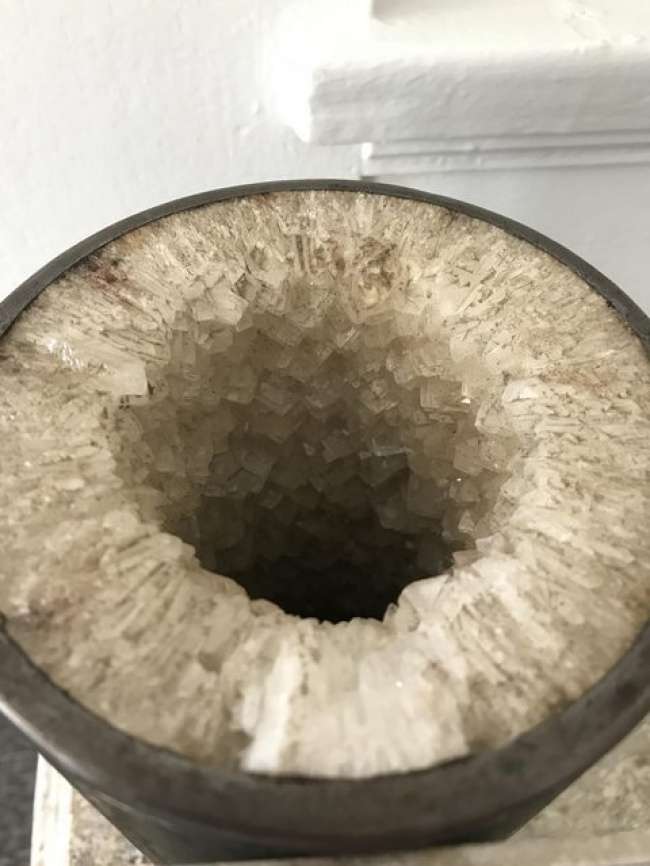 ▼看看這個水管!富含礦物質的溫泉流過水管,短短六個月之後,形成厚厚的結晶層。