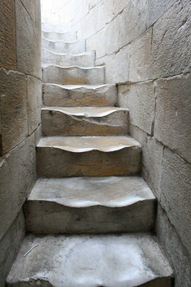 ▼階梯上留下了人們走動的痕跡。