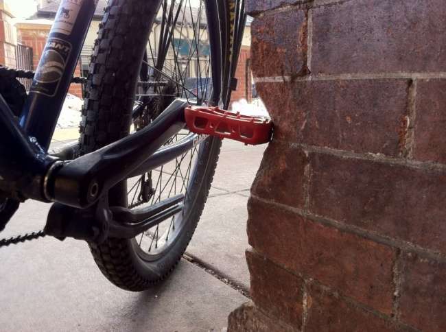 ▼腳踏車店的牆凹陷了!原來是每次顧客進店還車,踏板都會不小心擦撞到牆面。