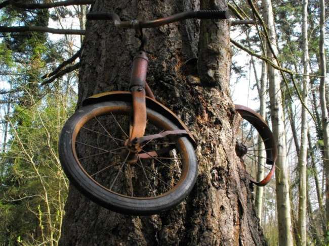 ▼1914年,一名男孩前往戰場前,將腳踏車停放在大樹旁,從此再也沒有回來牽車…