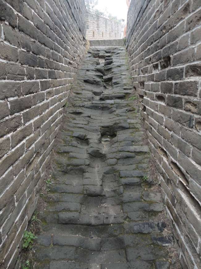 ▼在長期踩踏下,堅硬的萬里長城也會凹陷。
