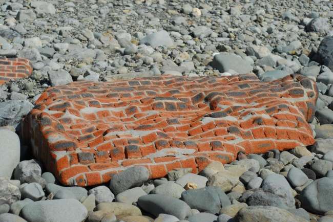 ▼整塊磚牆被大海塑形,被磨成可愛的不規則弧形。