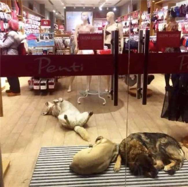 ▼一家名為「Penti」的內衣店甚至讓狗狗在溫暖的店裡睡覺,而一旁的顧客絲毫沒有被打擾的在選購商品。