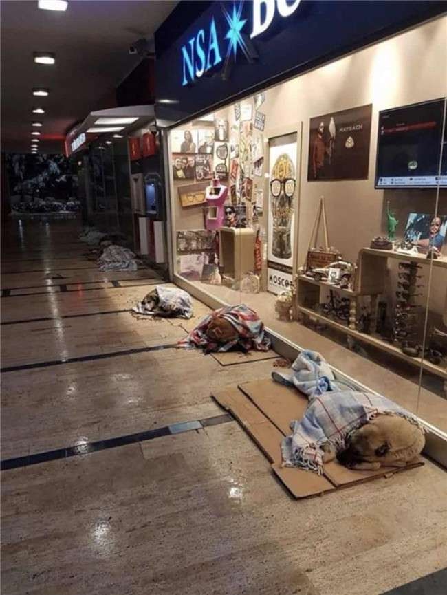 ▼好心的店家不會把流浪狗趕出去,他們提供紙板讓狗狗在上面睡覺,還給狗狗蓋上披肩或者毯子,給牠們取暖。