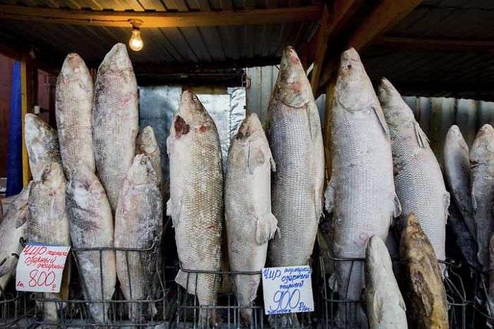 ▼街頭的攤販不用費心將魚冷藏保鮮,這樣的天氣還能腐爛的話算他們輸。