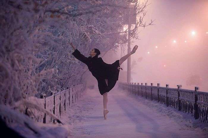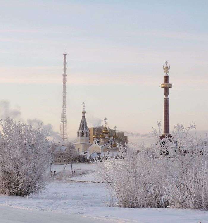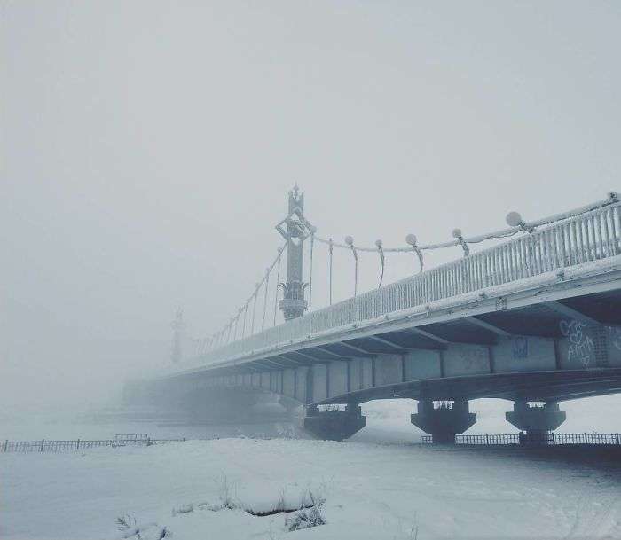 ▼附近城市雅庫次克的溫度為-48°C,還有人在路上騎自行車。