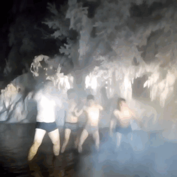 ▼這群中國遊客就專門過來泡溫泉,體驗冰火兩重天的感覺。