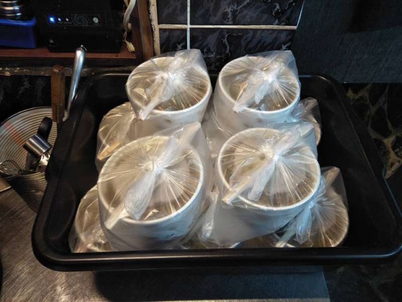 ▼每天餐廳打烊之後,何宇淨開始做這些額外的「深夜便當」,有時候太專注甚至做到半夜才肯下班!下雨天時,他會用塑膠袋細心包好便當,再擺到餐廳對面的變電箱上。