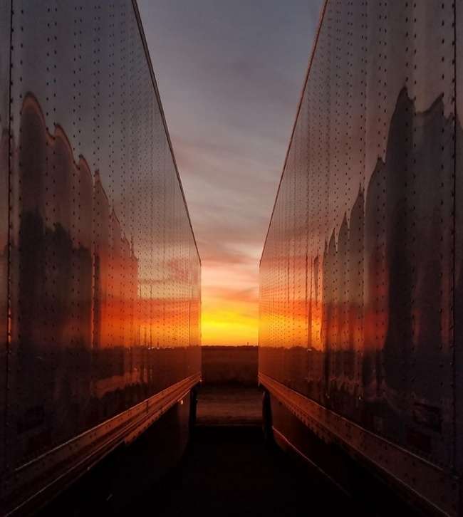 ▼從兩台車中間看落日,夕陽無限好。
