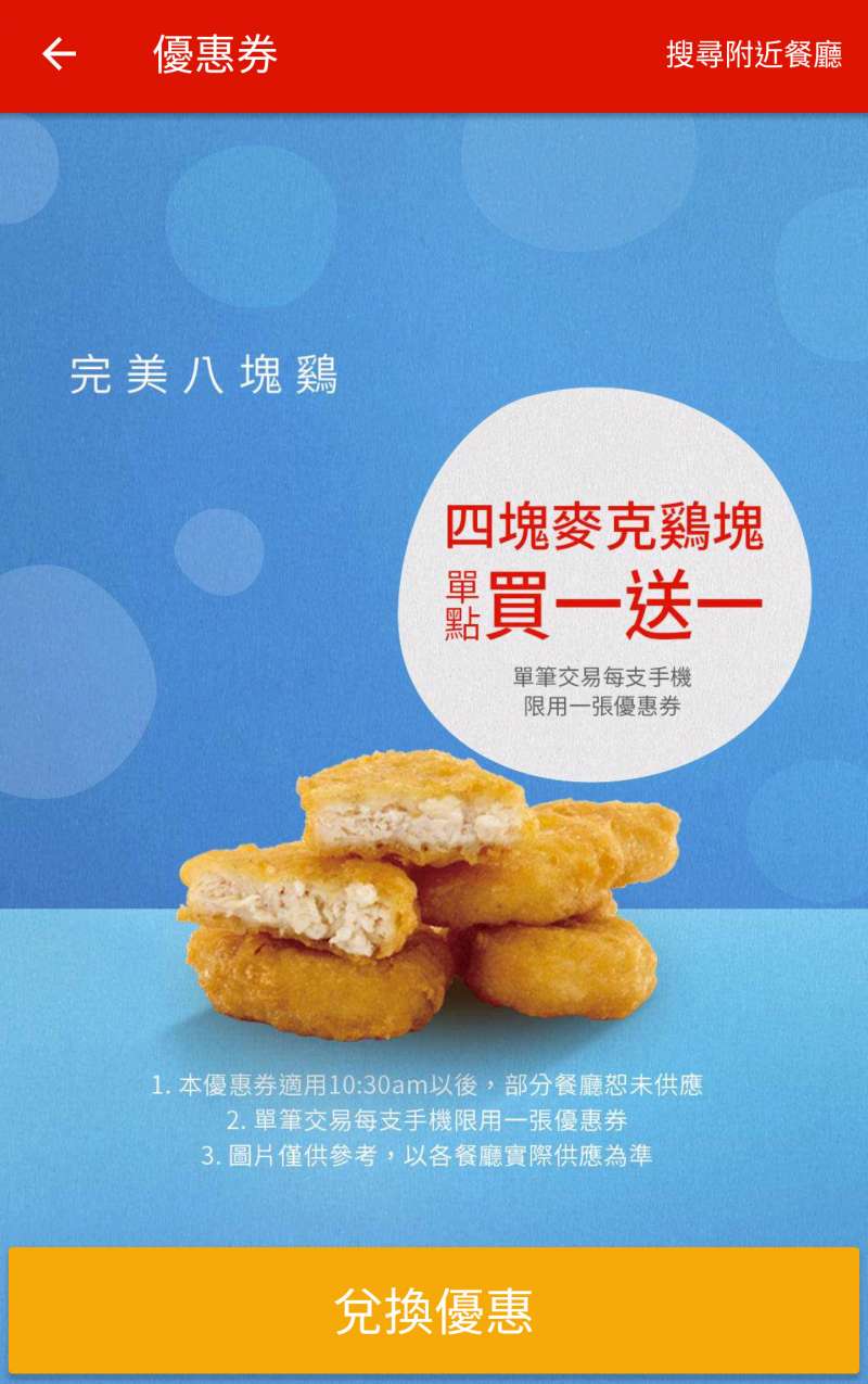 如果你也喜歡吃麥當勞的話,不妨下載這個app來抽取優惠券,可以省下一筆不小的金額呢!
