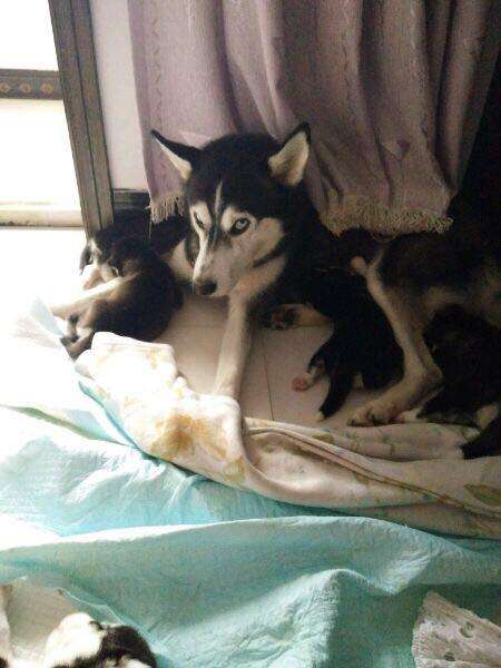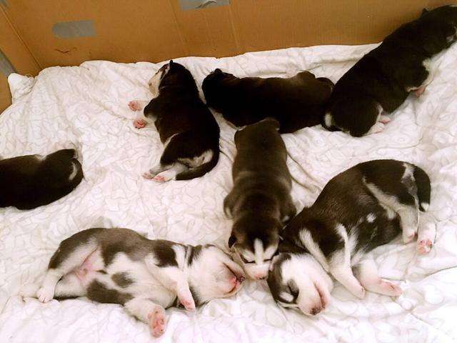 哈士奇媽媽「把寶寶全都叼去鄰居家」 「老娘超累想睡覺你幫忙顧啦」