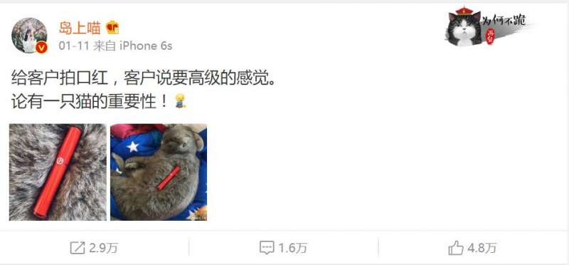 ▼最近,微博上一名叫做「島上喵」的攝影師接下了唇彩的攝影工作。客戶希望拍出「高級感」。他靈機一動,決定利用皮草來體現奢華的時尚感。