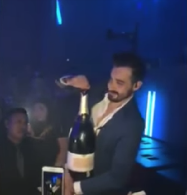 ▼這段攝於西班牙伊比薩島的影片近來在海外瘋傳,畫面中這位男子西裝筆挺,臉上掛著從容微笑,正要打開一瓶要價不斐的高級香檳,旁邊的群眾也都拿起手機錄影,看起來非常期待。
