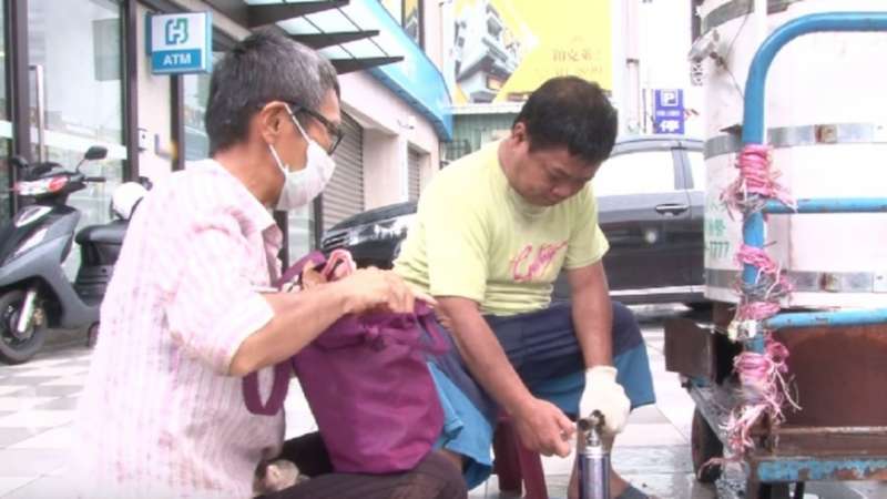 ▼而在貧窮線上掙扎的,不只屏東的彈珠台老爺爺,台南一位47歲的雷先生,10多年前罹患膀胱癌而無法工作,為了生活費跟醫療費用,跟有精神障礙的妻子一起上街賣地瓜。