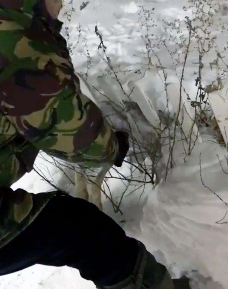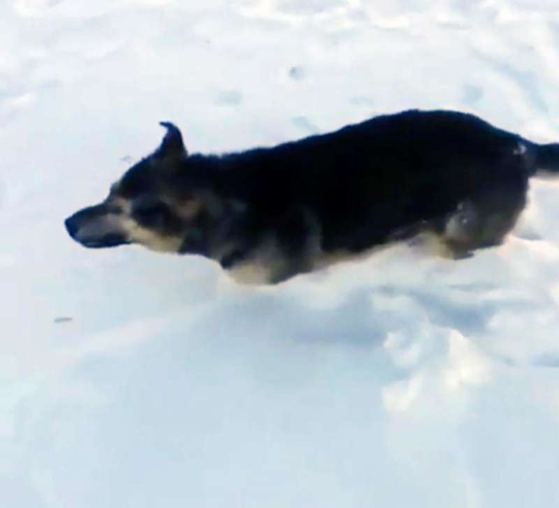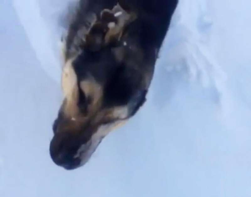 ▼發現者試圖把牠的遺體從雪堆裡拔出,發現遺體凍的硬梆梆,就像一根冰棍。
