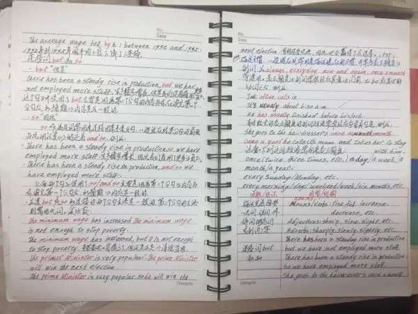 ▼薛敏修提道,家裡的電視機已經3年沒開過了,「我不能看電視,一看電視就想看電視劇,多浪費時間啊。」她很喜歡記筆記,每本筆記本攤開都是密密麻麻的,但字體工整,美麗的英文字更是令人自嘆弗如。