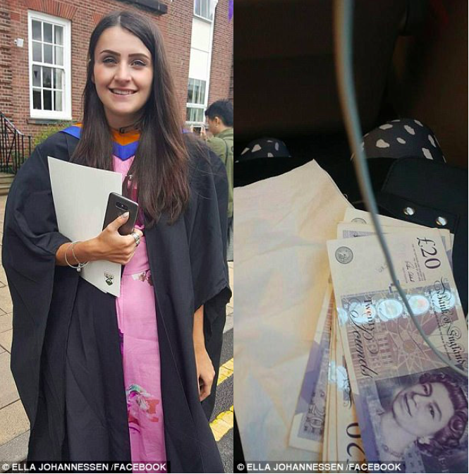 英國23歲女孩Ella Johannessen在利茲貝克特大學讀研究所。18個月前,她失去了父親和爺爺奶奶,心中非常悲痛。為了專注學業,她把打工辭掉,手頭也拮据了起來。前幾天,她在轉帳過程中遺失了35英鎊(約1436新台幣),情緒非常低落。
