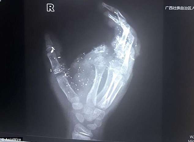 ▼醫生介紹,小明被送到醫院時,斷離的食指沒有一起帶過來。他的斷指被炸得只剩一點點,手掌嚴重受損,幾根手指沒辦法供血,醫生考慮再三後決定不為他接食指,努力搶救其他手指。