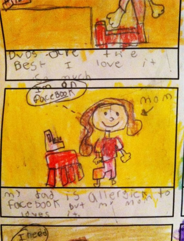 ▼「DVD真的超棒,我非常喜歡DVD。」「媽媽:我正在用臉書。」「我媽媽很喜歡用臉書,但我爸爸不喜歡。」