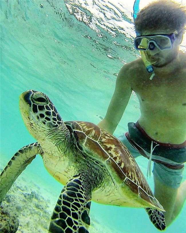 ▼喜歡潛水,和海洋生物近距離的接觸。